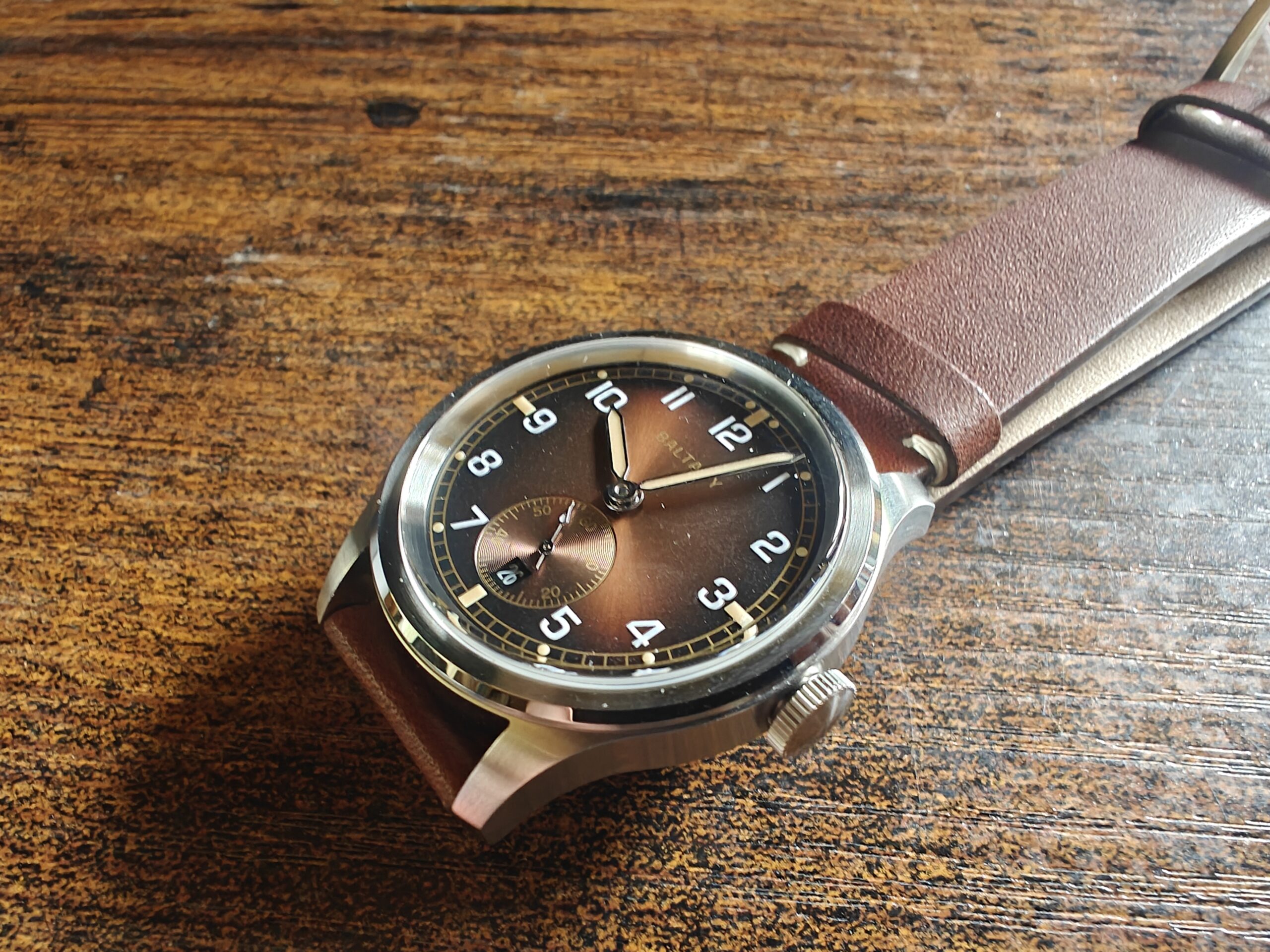 Inspired by the iconic World War II Army watches, the Dirty Dozen Sunburst blends rugged military roots with refined design updates. Part of our popular Dirty Dozen range, this edition introduces a striking sun-patterned dial and a discreet calendar window—enhancing both the look and utility of the classic dial.